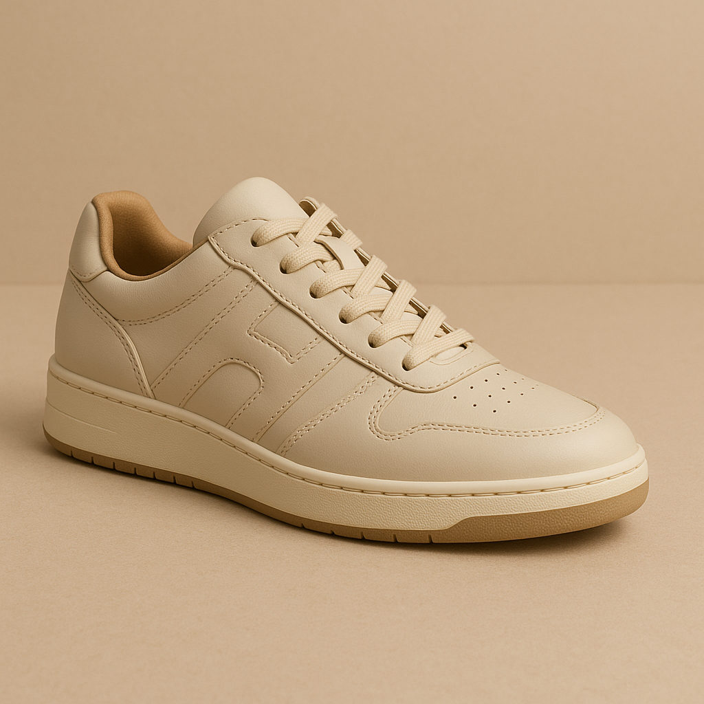 Ces baskets basses pour homme, en cuir lisse beige, allient confort et style épuré. Leur silhouette minimaliste est relevée par des coutures précises, un logo en relief sur le côté et une semelle ton sur ton pour un look polyvalent. Idéales pour une tenue casual chic.