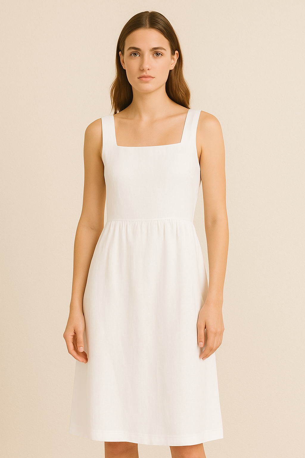 Cette robe blanche d’été séduit par sa coupe fluide et son tissu léger, idéal pour la saison chaude. Ses fines bretelles et son encolure délicatement échancrée soulignent une allure féminine et élégante. La couleur blanche intemporelle apporte fraîcheur et luminosité, tandis que la silhouette épurée en fait une pièce versatile. Parfaite pour vos journées ensoleillées comme pour vos soirées estivales.
